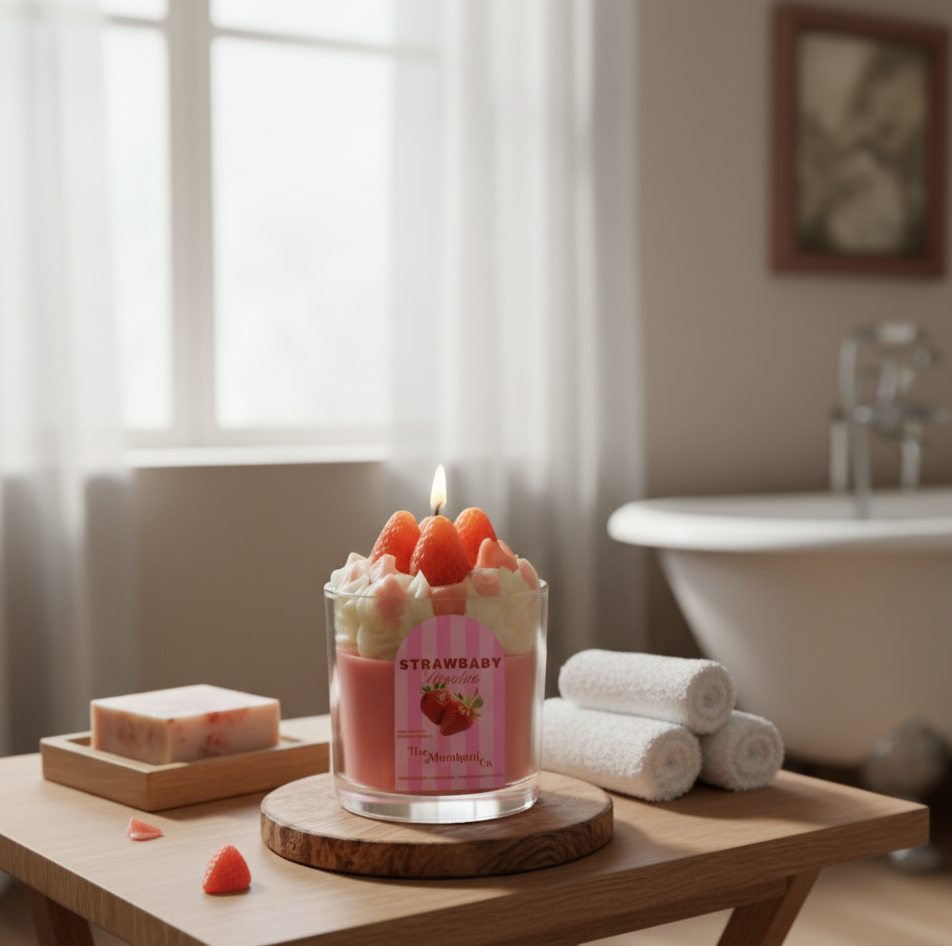 Spoon into nostalgia with a scent as sweet as it looks. Blending creamy vanilla swirls and ripe strawberries, this candle feels like a cozy Sunday afternoon pink skies, melting ice cream, and laughter that lingers. Hand-poured with soy wax and infused with strawberry & cream fragrance oils, it fills your space with warmth, sweetness, and a touch of childhood joy. Because the best desserts are the ones you don’t have to eat.